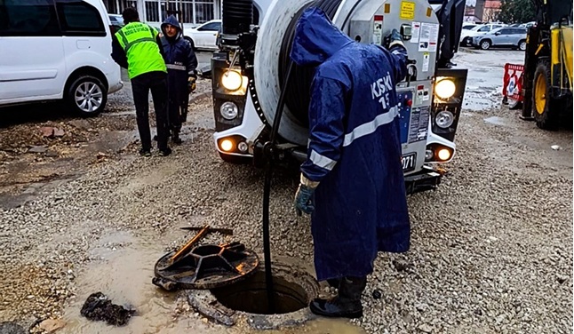 Yağmursuyu drenaj sistemlerinin sağlıklı çalışabilmesi için mazgallar ve su kanallarında biriken çamur, taş birikintileri ve diğer atıkları titizlikle temizleyen KASKİ ekipleri, olası su birikintilerinin ve taşkın riskinin önüne geçiyor. Ekipler; mazgallar, yağmursuyu ızgaraları ve yer altı drenaj hatlarında biriken çamur, taş ve çeşitli atıkları temizleyerek suyun akışını engelleyen unsurları ortadan kaldırıyor. Bu sayede ani yağışlarda oluşabilecek su taşkınlarının ve yol üzerindeki risklerin minimize edilmesi hedefleniyor.