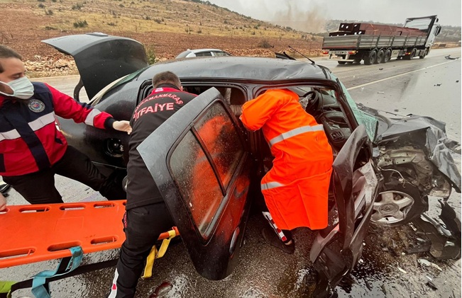 Kahramanmaraş’ın Pazarcık ilçesinde iki otomobilin çarpışması sonucu meydana gelen trafik kazasında 1 kişi hayatını kaybetti, 2 kişi yaralandı.
